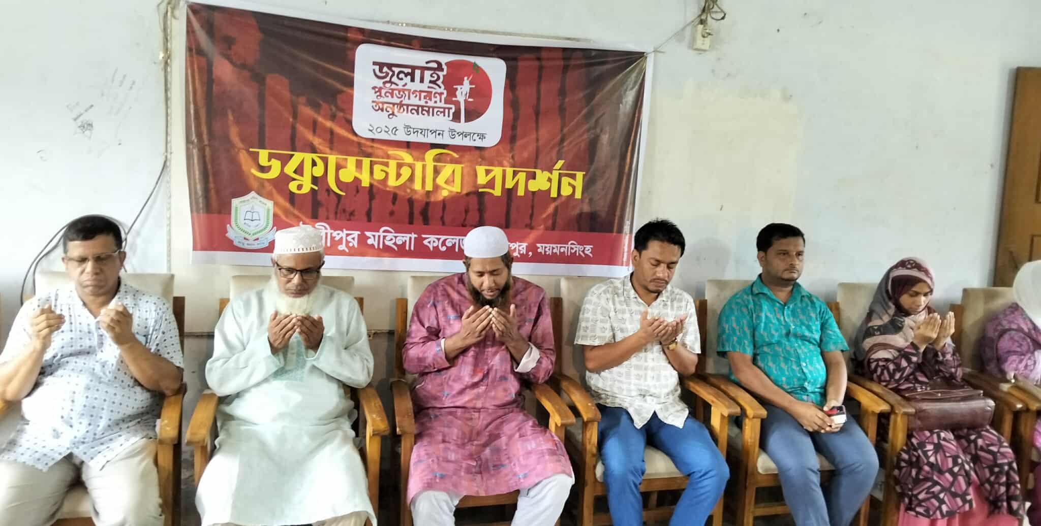 ময়মনসিংহের গৌরীপুর মহিলা কলেজের উদ্যোগে জুলাই পুনর্জাগরণ অনুষ্ঠানমালা উদযাপন উপলক্ষ্যে আলোচনা সভা, ডকুমেন্টারি প্রদর্শন ও দোয়া মাহফিল কলেজ প্রাঙ্গণে বুধবার ৫ আগস্ট/২০২৫ অনুষ্ঠিত হয়।